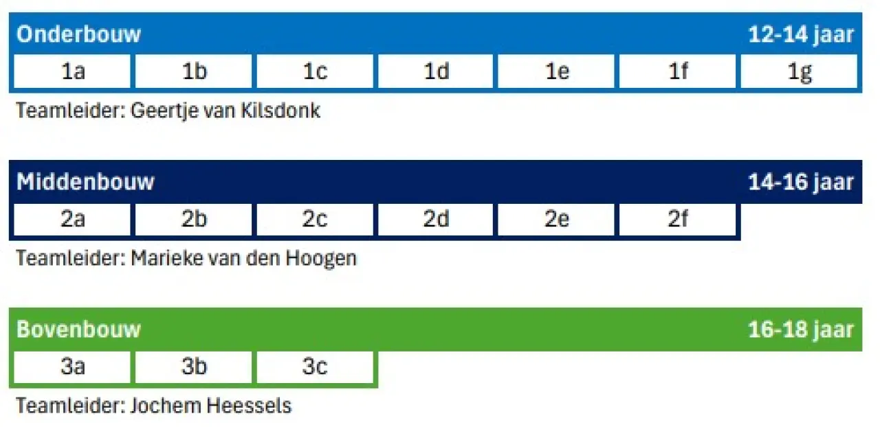 De tijden van de ochtend- en middagpauze zijn voor onderbouw en midden/bovenbouw gesplitst.